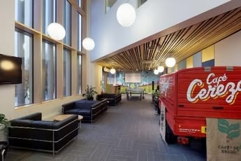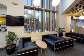 Nuestra escuela de inglés es moderna y cuenta con recepción, sala de estudiantes, jardín, patio exterior, restaurante y cafetería.