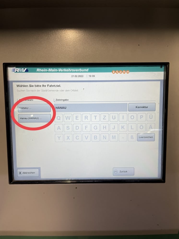 フランクフルト(ゾーン5000)市外へ電車で行く時の切符の買い方