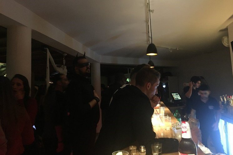 レセプションでエントランスの10€を支払い、リストバンドを巻いてもらい入場となります!22時の開始から少し遅れていったのですが、Halloween Partyはたくさんの人で大賑わいでした。 ラウンジ前には雰囲気たっぷりのウェルカムボードが!!