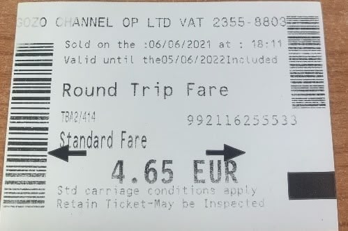 帰りのゴゾ→マルタ時に往復料金を支払います!