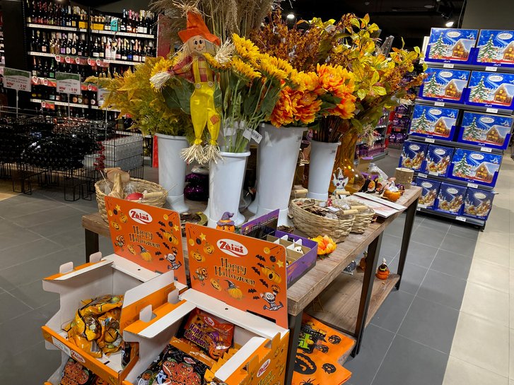 そんな状況でもスーパーマーケットではハロウィーンの飾り付けやお菓子がずらり!クリスマスのコーナーも既にできていました(笑)