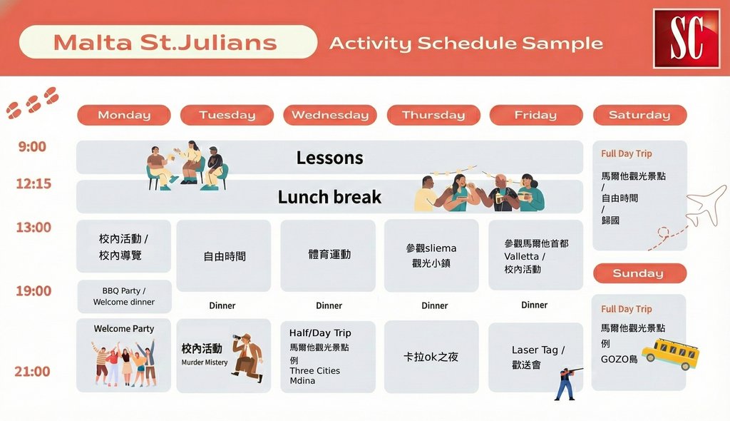 學校準備了豐富多元的活動,讓你盡情體驗只有在馬爾他才能感受到的獨特風情。